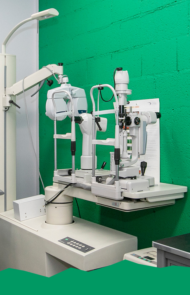 OCT-scan (netvliesscan), topograaf, spleetlamp, aslengte-meter en oogdrukmeter.
